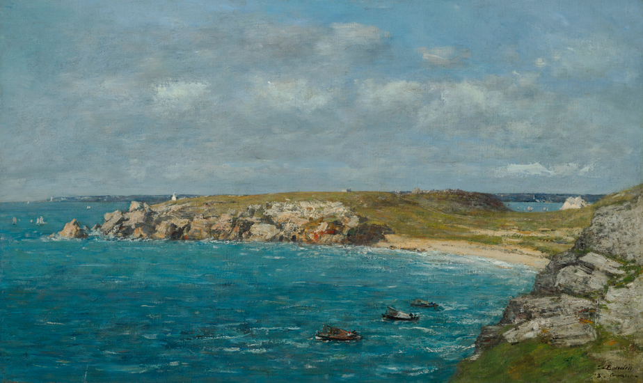 Y éclatent des couleurs franches, inspirées par la lumière du soleil, ainsi que des paysages marins à perte de vue, où les cieux deviennent les principaux protagonistes, ce qui fera dire à Charles Baudelaire ou Camille Corot que nul n'avait peint aussi bien les nuages que Boudin. C'est d'ailleurs la raison pour laquelle Claude Monet écrira, à la fin de sa vie, qu'il devait "tout à Boudin", ce dernier ayant ouvert la voie à la peinture en plein air et au rendu des effets atmosphériques; ce que l'on appellera "l'impressionnisme".